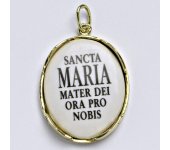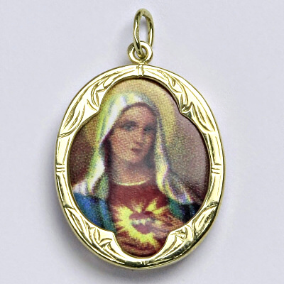 Zlatý přívěsek madonka ze žlutého zlata. Medajlón madonka 29 mm i s ouškem. Orientační váha přívěsku je 3,22 g. Materiál je žluté zlato 14 karátů 585/1000.