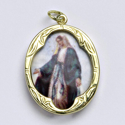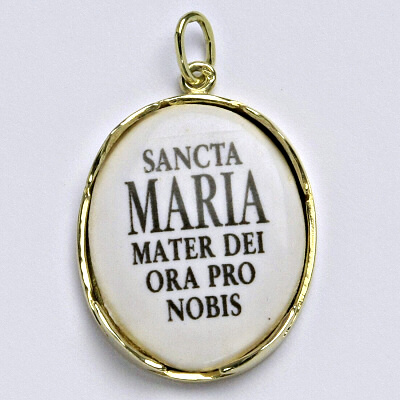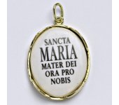 Zlatý přívěsek madonka ze žlutého zlata. Medajlón madonka 29 mm i s ouškem. Orientační váha přívěsku je 3,22 g. Materiál je žluté zlato 14 karátů 585/1000.