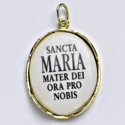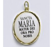 Zlatý přívěsek madonka ze žlutého zlata. Medajlón madonka 29 mm i s ouškem. Orientační váha přívěsku je 3,22 g. Materiál je žluté zlato 14 karátů 585/1000.