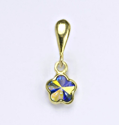 Zlatý přívěšek ze žlutého zlata se Swarovski krystalem. Velikost přívěšku i se závěsem je 19 mm. Materiál je žluté zlato 14 karátů 585/1000.Orientační váha přívěšku je 0,71 g.