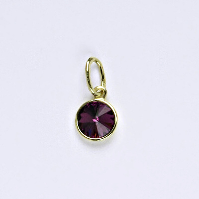 Zlatý přívěsek se Swarovski krystalem. Průměr Swarovski krystalu je 5 mm. Celková výška přívěsku i se závěsem je 13 mm. Přívesek je ze žlutého čtrnácti karátového zlata 585/1000. Orientační váha je 0,45 g.