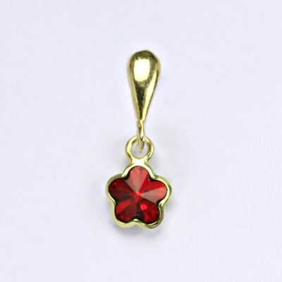 Zlatý přívěšek ze žlutého zlata se Swarovski krystalem. Velikost přívěšku i se závěsem je 19 mm. Materiál je žluté zlato 14 karátů 585/1000.Orientační váha přívěšku je 0,71 g.