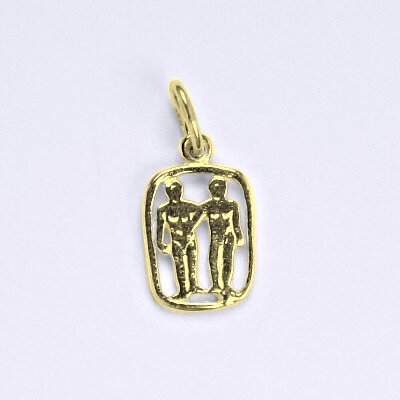 Zlatý přívěšek znamení zvěrokruhu blíženec. Celková výška přívěšku je 17 mm. Orientační váha přívěsku je 0,79 g. Materiál je 14 karátové žluté zlato 585/1000.