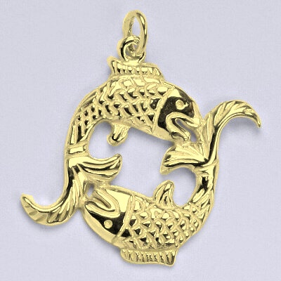 Zlatý přívěšek znamení zvěrokruhu ryba. Celková výška přívěšku je 27 mm. Orientační váha přívěsku je 1,92 g. Materiál je 14 karátové žluté zlato 585/1000.
