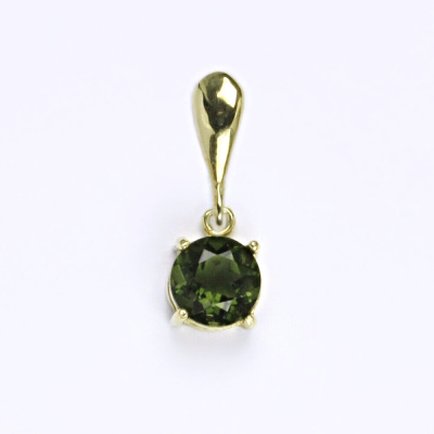 Zlatý přívěšek ze žlutého zlata 14 karátů s přírodním vltavínem. Velikost kamene je 7 mm. Celková výška přívěšku je 19 mm. Orientační váha náušnic je 1,29 g.