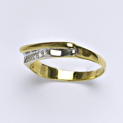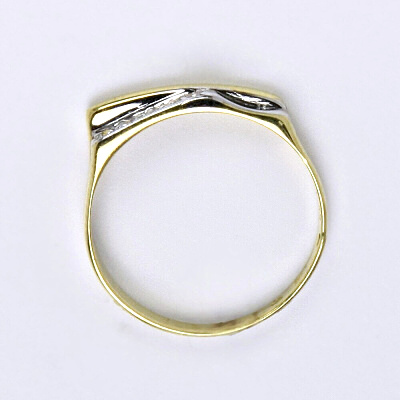Prsten je vyrobený ze žlutého a bílého zlata, je osazený čirými syntetickými zirkony. Materiál je zlato 14 karátů 585/1000.