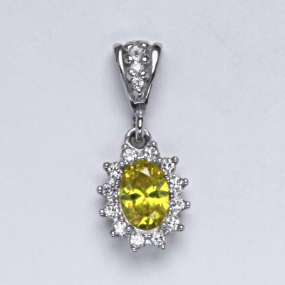 Zlatý přívěšek je zdoben žlutým zirkonem o velikosti 7x5 mm a malými čirými zirkony. Materiál je bílé zlato 585/1000. Celková výška přívěšku je 22 mm. Orientační váha přívěsku je 1,85 g.