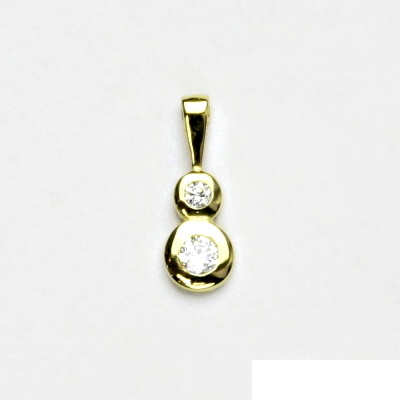 Přívěsek ze žlutého zlata je zdoben čirými zirkony. Materiál je zlato 585/1000. Rozměr přívěsku je 15 mm včetně úchytu na výšku a 5 mm na šířku. Orientační váha přívěsku je 0,42 g.