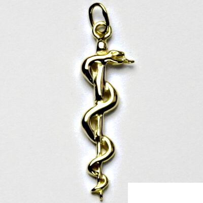 Přívěsek ve tvaru lékařského znaku je vyroben ze žlutého zlata. Materiál je zlato 585/1000. Rozměr přívěsku je 36,5 mm včetně očka na výšku. Orientančí váha přívěsku je 1,54 g.