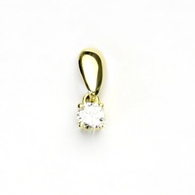 Přívěsek ze žlutého zlata s čirým zirkonem o průměru 4 mm.. Materiál je zlato 585/1000. Orientační váha přívěsku je 0,84 g. Rozměr přívěsku je 13 mm včetně úchytu na výšku a 4 mm na šířku.