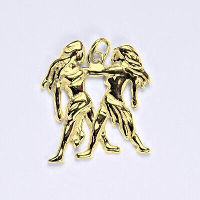 Zlatý přívěšek znamení zvěrokruhu blíženec. Celková výška přívěšku je 24 mm. Orientační váha přívěsku je 3,35 g. Materiál je 14 karátové žluté zlato 585/1000.