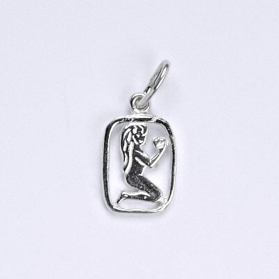 Zlatý přívěšek znamení zvěrokruhu panna. Celková výška přívěšku je 17 mm. Orientační váha přívěsku je 0,61 g. Materiál je 14 karátové bílé zlato 585/1000.