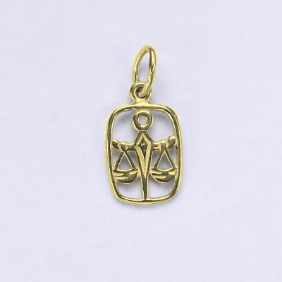 Zlatý přívěšek znamení zvěrokruhu váha. Celková výška přívěšku je 17 mm. Orientační váha přívěsku je 0,55 g. Materiál je 14 karátové žluté zlato 585/1000.