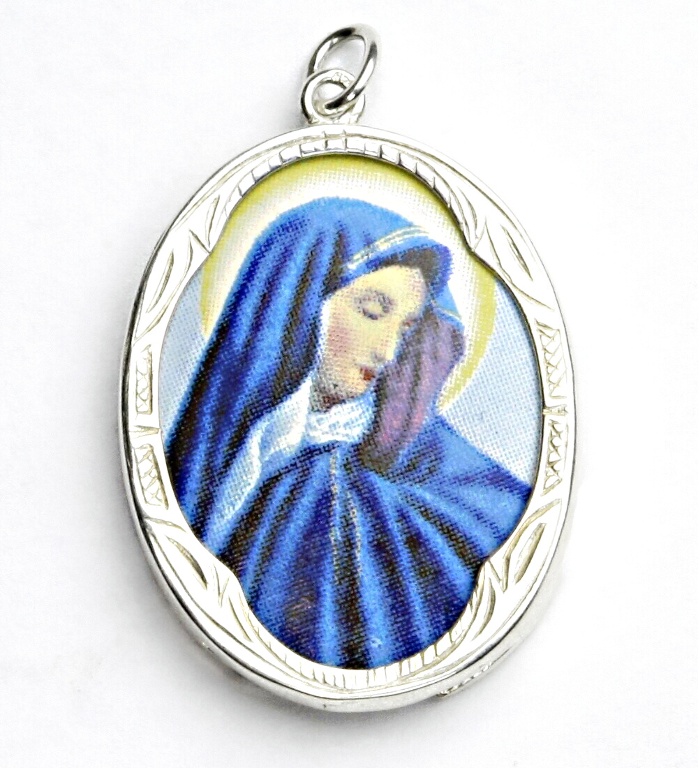 Medailonek Madonka je vyroben z kvalitního porcelánu. Rámeček je vyroben z bílého zlata. Materiál je zlato 585/1000. Rozměr přívěsku je je 32 mm včetně očka na výšku a 20 mm na šířku. Orientační váha přívěsku je 4,09 g.