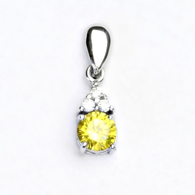 Použité kameny:zirkony: žlutý: 1 x průměr 6 mm, čiré: 3x průměr 2,25 mm.