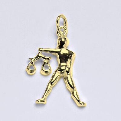 Zlatý přívěšek znamení zvěrokruhu váhy. Celková výška přívěšku je 22 mm. Orientační váha přívěsku je 1,53 g. Materiál je 14 karátové žluté zlato 585/1000.