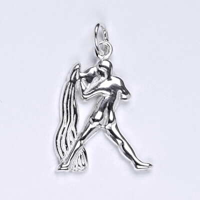 Zlatý přívěšek znamení zvěrokruhu vodnář. Celková výška přívěšku je 22 mm. Orientační váha přívěsku je 1,55 g. Materiál je 14 karátové bílé zlato 585/1000.