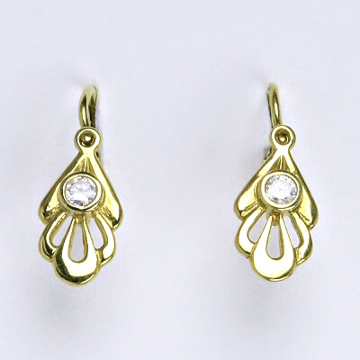 Náušnice jsou vyrobeny ze žlutého zlata 14 karátů 585/1000, jsou zdobeny syntetickým čirým zirkonem. Zapínání na náušnicích je klasické dětské zapínání. Celková velikost náušničky je 18 mm.