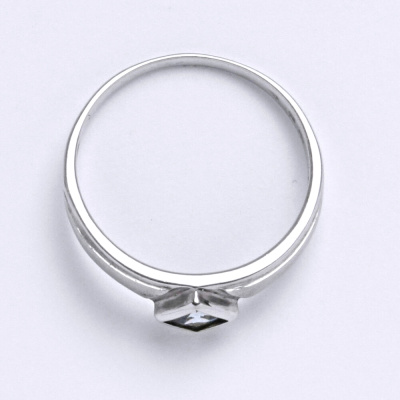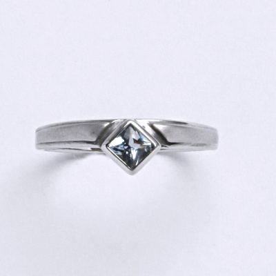 prsten bílé zlato, zdoben syntetickým aquamarinem a pískováním (matováním), velikost 58