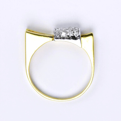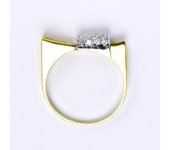 Prsten je v kombinaci žluté a bílé zlato 14 karátů 585/1000, zdobený syntetickým zirkonem. Velikost prstenu je 55. Při více kusech skladem je váha šperku pouze orientační.
