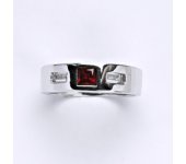 Prsten je vyrobený z bílého zlata 14 karátů 585/1000, zdobený syntetickým rubínem a zirkonem. Velikost prstenu je 52. Při více kusech skladem je váha šperku pouze orientační.