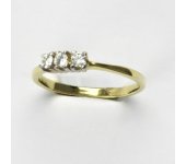 Prsten je vyrobený z kombinace žlutého a bílého zlata. Do zlata jsou zafasovány syntetické zirkony. Materiál je zlato o ryzosti 14 karátů 585/1000. Orientační váha prstenu je 2,12 g. Prsten máme skladem ve velikosti 56. Průměr zirkonu je 2 mm.