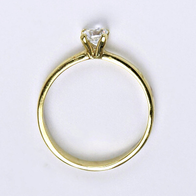 Prsten je vyrobený ze žlutého zlata, je zdobený syntetickým zirkonem 4 mm. Materiál je zlato 14 karátů 585/1000.