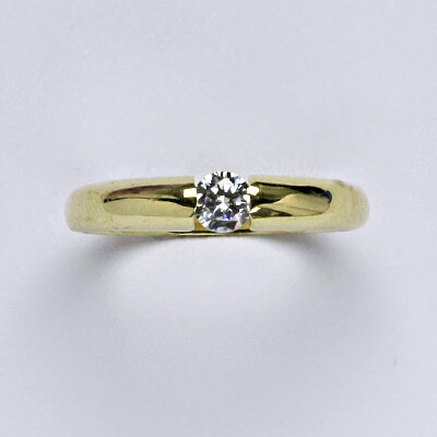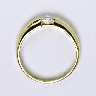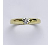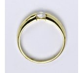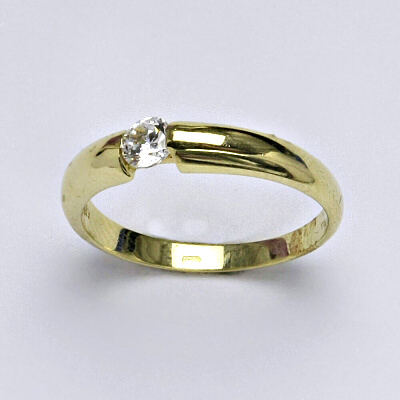 Prsten je vyrobený ze žlutého zlata, je zdobený syntetickým zirkonem 3 mm. Materiál je zlato 14 karátů 585/1000.