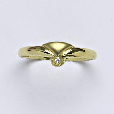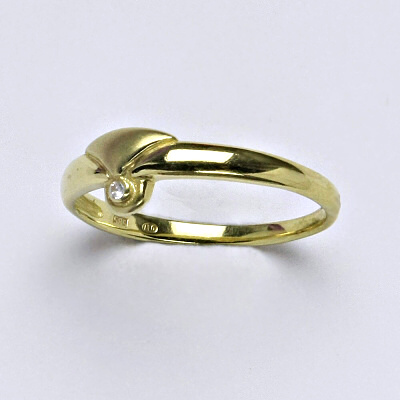 Prsten je vyrobený ze žlutého zlata, zdobený syntetickým zirkonem o průměru 1,5 mm a matováním. Materiál je zlato 14 karátů 585/1000.