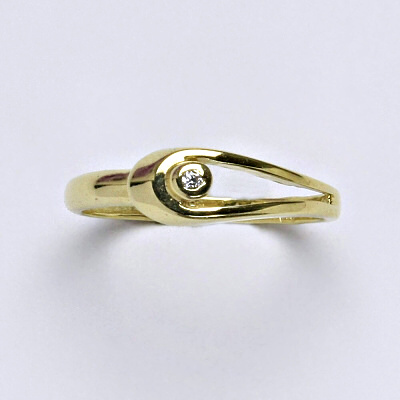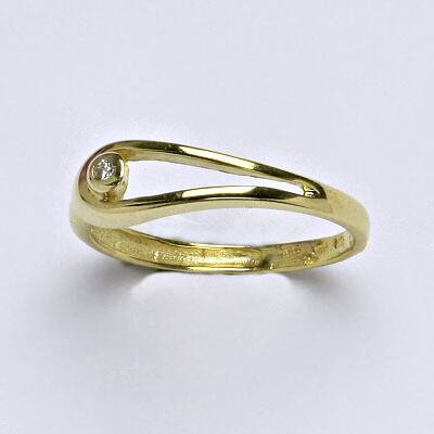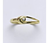 Prsten je vyrobený ze žlutého zlata, zdobený syntetickým zirkonem o průměru 1,5 mm. Materiál je zlato 14 karátů 585/1000.