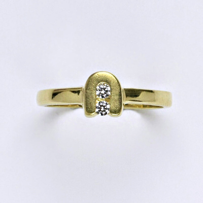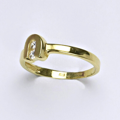 Prsten je vyrobený ze žlutého zlata, zdobený čirými syntetickými zirkony 2 mm. Materiál je zlato 14 karátů 585/1000.