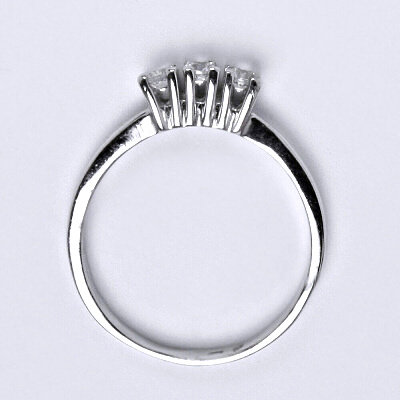 Prstýnek je vyrobený z bílého zlata 14 karátů 585/1000. Prstýnek je osazený syntetickými zirkony o průměru 3 mm.