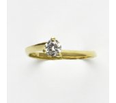 Zlatý prsten s čirým zirkonem. Průměr zirkonu 4,75 mm. Materiál je zlato 585/1000. Orientační váha prstenu je 1,70 g. Prsten máme skladem ve velikosti 58.