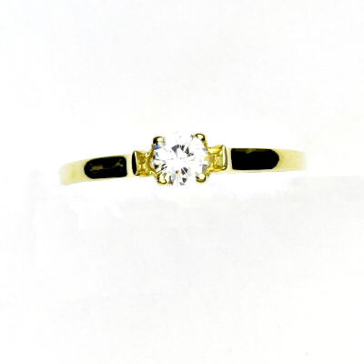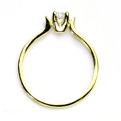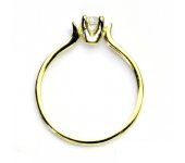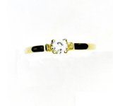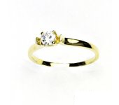 Prstýnek ze žlutého zlata je zdoben čirým zirkonem o průměru 4 mm. Materiál je zlato 585/1000. Orientační váha prstenu ve velikosti 55 je 1,83 g. Prstýnek je vhodný i jako zásnubní.