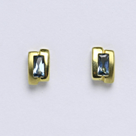 Náušnice ze žlutého zlata jsou osazeny syntetickým akvamarínem. Velikost náušnice je 8 mm. Orientační váha je 1,62 g.