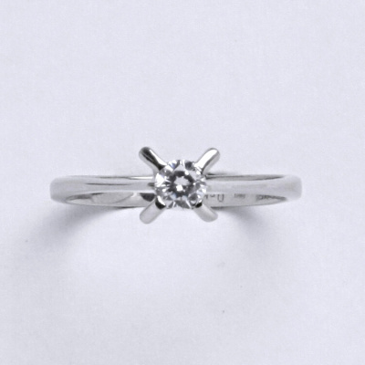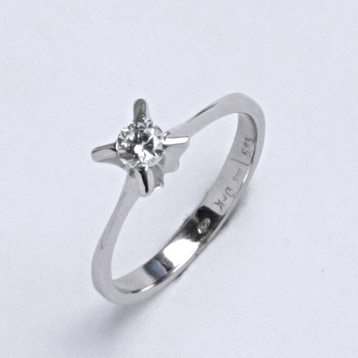 prsten zásnubní bílé zlato, zdoben syntetickým zirkonem, velikst 55