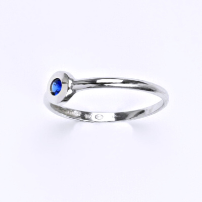 Prsten z bílého 14 karátového zlata 585/1000 zdobený spinelem. Orientační váha prstenu je 1,20 g.