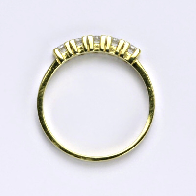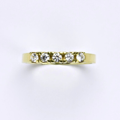 Prsten je vyrobený ze žlutého zlata 14 karátů 585/1000, zdobený syntetickým zirkonem. Velikost prstenu je 57,5. Při více kusech skladem je váha šperku pouze orientační.