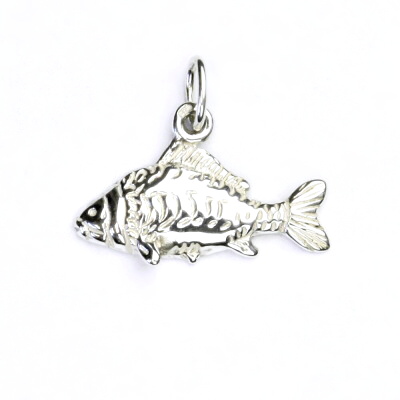 Přívěsek z bílého zlata ve tvaru kapra. Materiál je zlato 585/1000. Orientační váha přívěsku je 1,21 g. Rozměr přívěsku je 15 mm včetně očka na výšku a 18 mm na šířku.