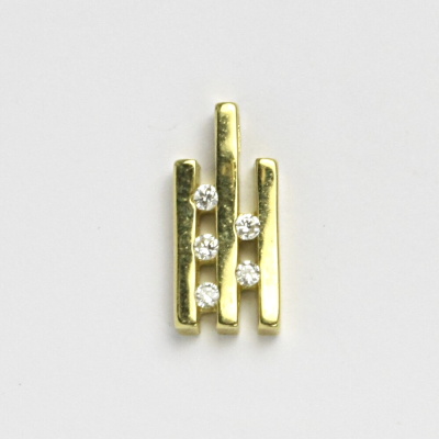 Přívěsek ze žlutého zlata 585/1000 zdobený syntetickým zirkonem. Celková výška závěsu včetně ouška je 16 mm. Při více kusech skladem je váha orientační.