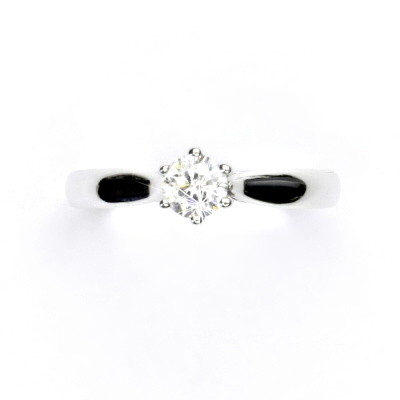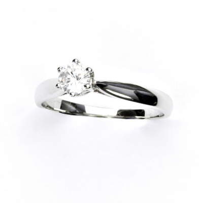 Prstýnek z bílého zlata s čirým zirkonem o průměru 4,5 mm. Materiál je zlato 585/1000. Orientační váha prstýnku ve velikosti 54 je 2,29 g. Je vhodný i jako zásnubní prsten.