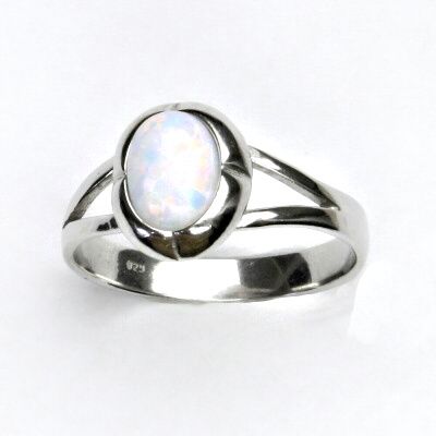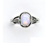 Prstýnek z bílého zlata je zdoben bílým syntetickým opálem o rozměru 7x5 mm. Orietnační váha prstenu ve velikosti 54 je 3,21 g. Prstýnek nabízíme v různých velikostech. Materiál je zlato 585/1000.