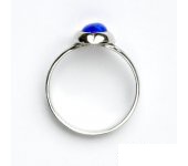 Prstýnek z bílého zlata je zdoben tmavě modrým syntetickým opálem o rozměru 7x5 mm. Orietnační váha prstenu ve velikosti 54 je 3,21 g. Prstýnek nabízíme v různých velikostech. Materiál je zlato 585/1000.