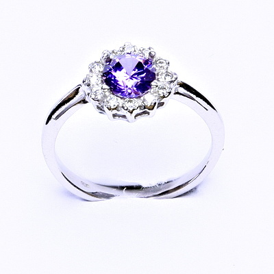 Prsten z bílého zlata ryzosti 585/1000, zirkon ametyst 5,5 mm.