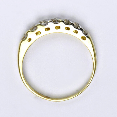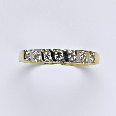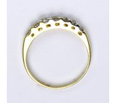 Prsten je vyrobený ze žlutého a bílého zlata, je zdobený syntetickým zirkonem. Materiál je zlato 14 karátů 585/1000.