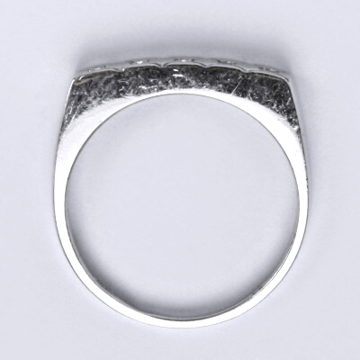 Zlatý prsten s čirými zirkony z bílého zlata. Váha prstenu je 2,58 g. Prsten máme ve velikosti 57. Materiál je 14 karátové zlato 585/1000.