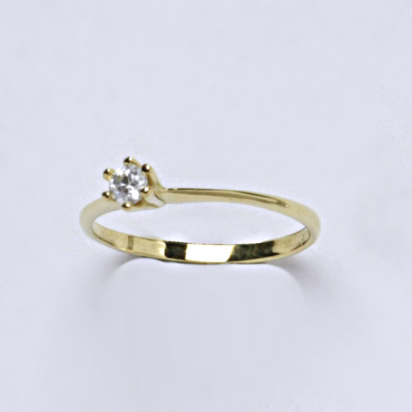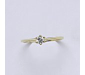 Prsten ze žlutého zlata 585/1000. Použitý zirkon 3,25 mm. Hlava prstenu 5 mm. Orientační váha cca 1,3 g.