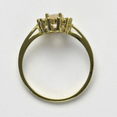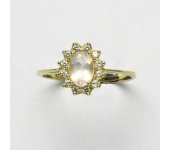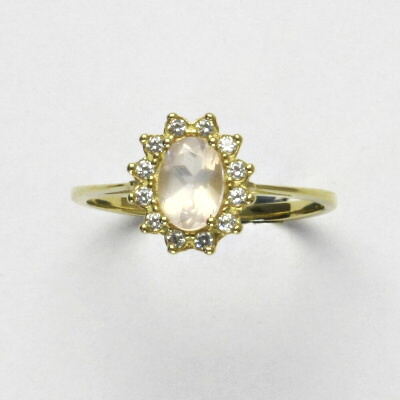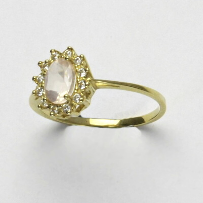 Prsten je vyroben ze žlutého zlata. Je zdoben přírodním růženínem o rozměru 7x5 mm a malými čirými zirkony. Materiál je zlato 585/1000. Orientační váha prstenu ve velikosti 54 je 2,37 g.