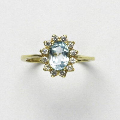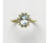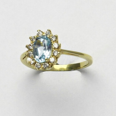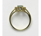 Prsten je vyroben ze žlutého zlata. Je zdoben přírodním topazem sky o rozměru 7x5 mm a malými čirými zirkony. Materiál je zlato 585/1000. Orientační váha prstenu ve velikosti 54 je 2,37 g.