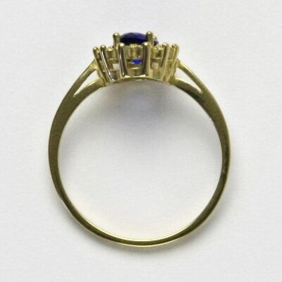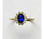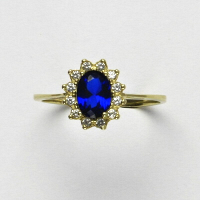 Prsten je vyroben ze žlutého zlata. Je zdoben spinelem o rozměru 7x5 mm a malými čirými zirkony. Materiál je zlato 585/1000. Orientační váha prstenu ve velikosti 54 je 2,37 g.